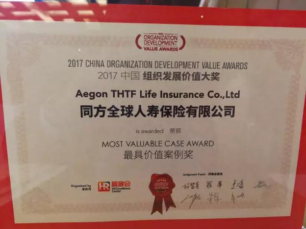 近年來,同方全球人壽在產(chǎn)品創(chuàng)新方面持續(xù)發(fā)力的同時,在人力資源發(fā)展專業(yè)領域中也有所斬獲!近日,于上海舉行的“2017中國組織發(fā)展價值大獎”頒獎典禮,同方全球人壽公司憑借“變焦 變速 變革-打造企業(yè)快速發(fā)展”的企業(yè)變革實踐案例所體現(xiàn)的專業(yè)、嚴謹、全面、創(chuàng)新、高效,從近兩百家候選企業(yè)中脫穎而出,并一舉榮獲“最具價值案例獎”。
