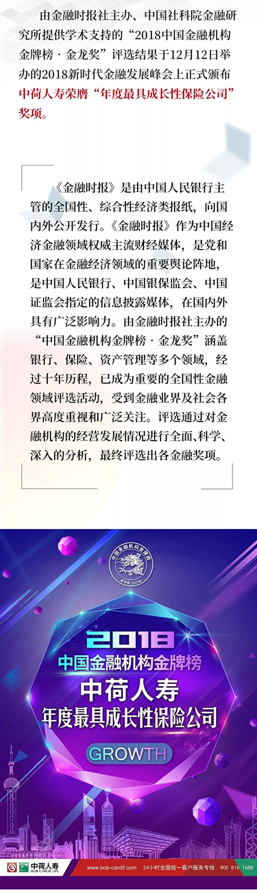 中荷人壽榮獲“年度最具成長性保險公司”獎項!