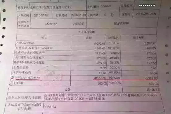 朋友是一名公務(wù)員,肺癌。1月7號(hào)入院,1月15號(hào)出院,短短8天時(shí)間,總費(fèi)用63732元;結(jié)果社?;踞t(yī)療只報(bào)了15755元(看似65%的報(bào)銷比例很高,但扣去自費(fèi)部分,能報(bào)的總額太少),社保補(bǔ)充醫(yī)療報(bào)了3356元,自費(fèi)44620元。
