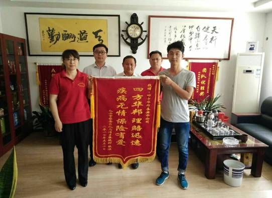 通過這兩次的理賠,張女士非常的認可四方華邦公司及其合作公司中荷人壽保險的服務(wù),特別制作了一面錦旗送到公司表示感謝。
