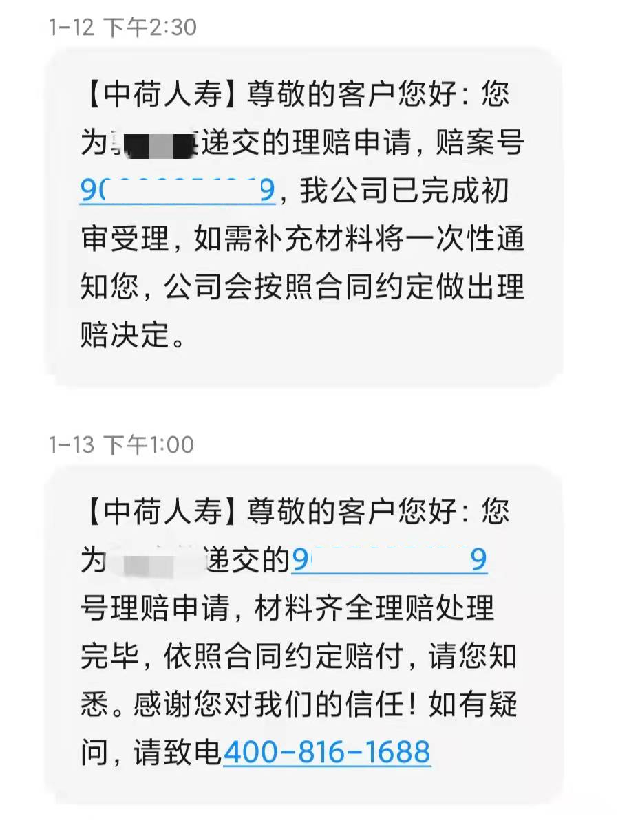 天有不測(cè)風(fēng)云,在2021年郭女士被確診為甲狀腺惡性腫瘤,住院治療共花費(fèi)20681.77元。出院后泰安分公司王明剛總幫助客戶整理遞交了理賠資料,中荷人壽收到資料后于2022年1月12日錄進(jìn)系統(tǒng),次日依照合同約定賠付了104261.41元,并豁免了后期17年的重疾保費(fèi)共計(jì)59908元,重疾保障繼續(xù)有效。