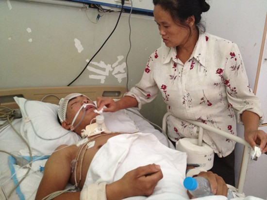 “我只想立新活著,哪怕給我留下一個‘植物’兒子?!蹦赣H方永英告訴記者,住院的半個月,花錢如流水一般,但是兒子的傷情沒有明顯改觀,最無奈的是,現(xiàn)在她手里沒錢了?!罢厥滤緳C只送來15000元,村里捐了12500元,家里也就能拿出5000元,可是這些不夠啊?!狈接烙⒄f,自兒子住院后,醫(yī)療費已花去近10萬元,9月15日,為了節(jié)省醫(yī)療費用,她只得忍痛將兒子轉出重癥監(jiān)護室,入住護理條件稍差些的普通病房。