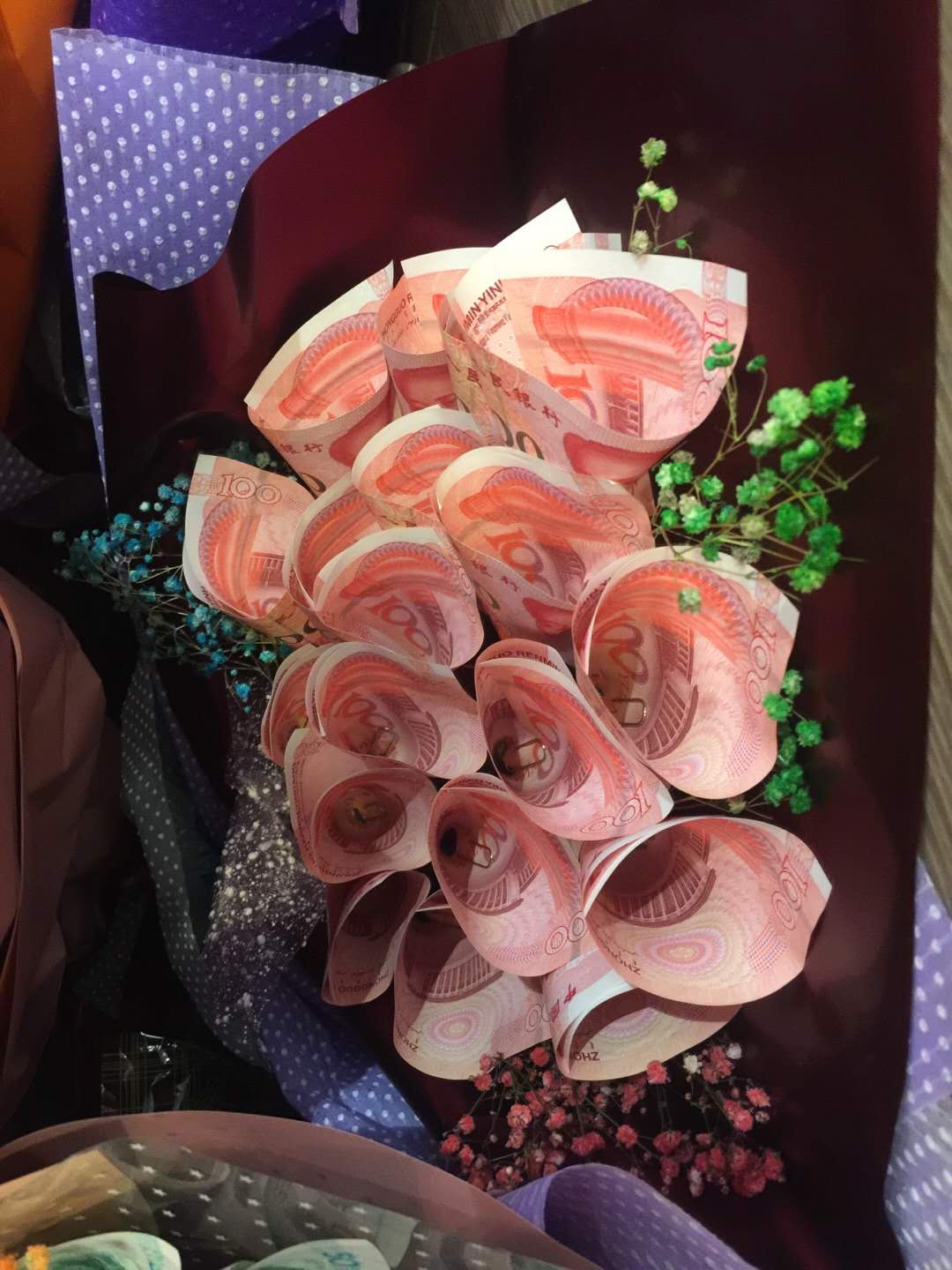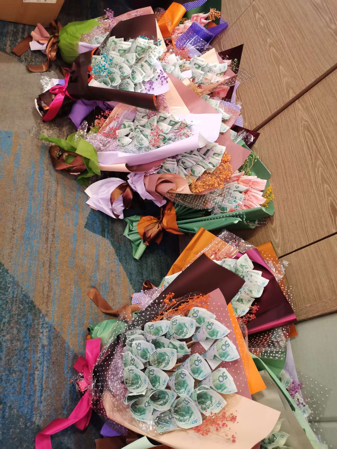 14日晚,榮譽(yù)宴在舜和柏曼酒店舉行,每位達(dá)成季度之星的伙伴現(xiàn)場(chǎng)都拿到了用“毛爺爺”包成的錢花,每個(gè)人臉上都洋溢著幸福開(kāi)心的笑容。