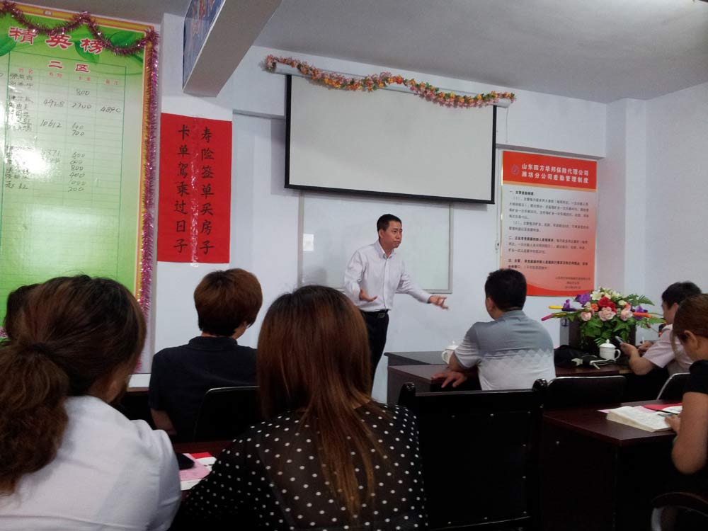 2013年6月中下旬,中荷人壽山東分公司總經(jīng)理方光維先生與副總張恒柱,由我們總公司的兩位領(lǐng)導(dǎo)陪同,一起到我們的機(jī)構(gòu)兌現(xiàn)了“中荷方總授課”的獎勵方案。