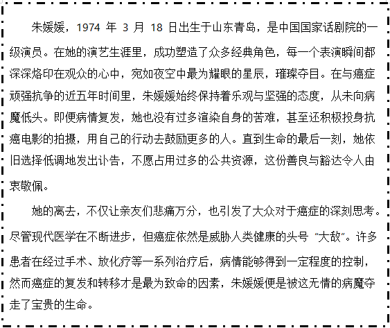 悲痛!知名演員朱媛媛因癌癥復(fù)發(fā)離世,關(guān)注癌癥防治刻不容緩