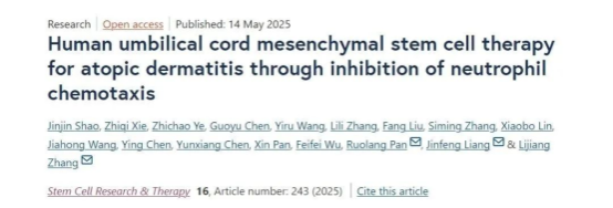 近期,國(guó)內(nèi)一聯(lián)合研究團(tuán)隊(duì)在國(guó)際期刊《Stem Cell Research & Therapy》發(fā)表了一項(xiàng)重要研究,題為《Human umbilical cord mesenchymal stem cell therapy for atopic dermatitis through inhibition of neutrophil chemotaxis》此項(xiàng)研究聚焦特應(yīng)性皮炎(AD),探索了人臍帶間充質(zhì)干細(xì)胞(hUC-MSCs)及其衍生的條件培養(yǎng)基(hUC-MSC-CM)的臨床潛力和作用機(jī)制,為 AD 的臨床治療提供了全新思路。