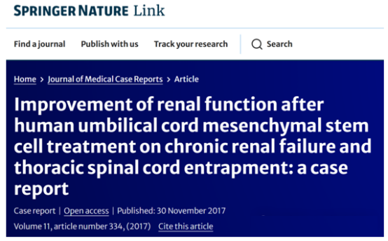 2017年11月30日,印度尼西亞大學(xué)醫(yī)學(xué)院Cipto Mangunkusumo醫(yī)院骨科與創(chuàng)傷科研究團(tuán)隊在《Journal of Medical Case Reports》上發(fā)表了一篇《人臍帶間充質(zhì)干細(xì)胞治療慢性腎衰竭合并胸椎脊髓受壓后腎功能改善:一例報告》的臨床研究成果。