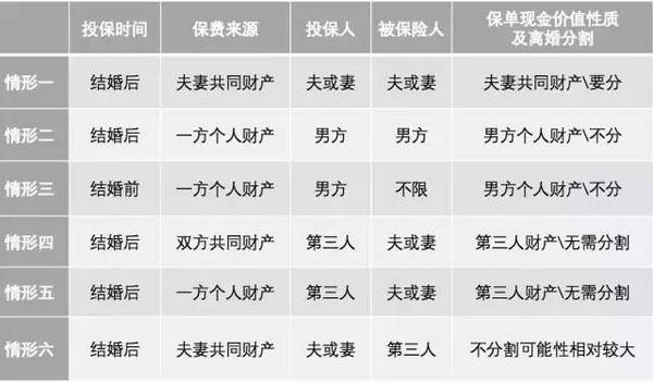 婚姻關(guān)系存續(xù)期間以夫妻共同財產(chǎn)投保,投保人和被保險人同為夫妻一方,離婚時處于保險期內(nèi),投保人不愿意繼續(xù)投保的,保險人退還的保險單現(xiàn)金價值部分應(yīng)按照夫妻共同財產(chǎn)處理;離婚時投保人選擇繼續(xù)投保的,投保人應(yīng)當(dāng)支付保險單現(xiàn)金價值的一半給另一方。(摘自“婚姻家庭篇”第四條)
