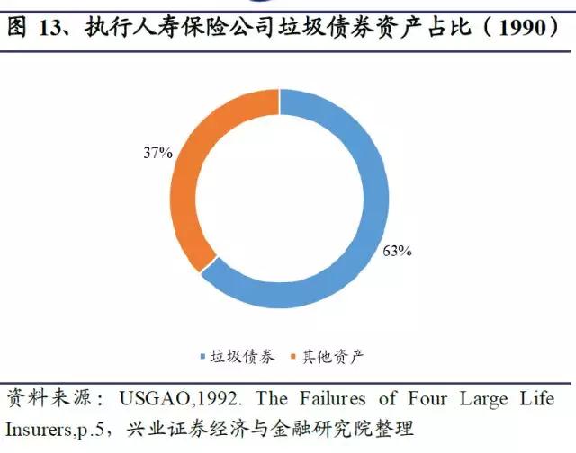 然而,1980-1990年間,美國債券市場整體違約率迅速升至10%以上,垃圾債券市場崩潰。此期間投資垃圾債券的壽險公司中,執(zhí)行人壽保險公司(Executive Life Insurance)成為典型。該公司利用債券市場高收益機會,進行了大規(guī)模投資,并取得了豐厚回報。