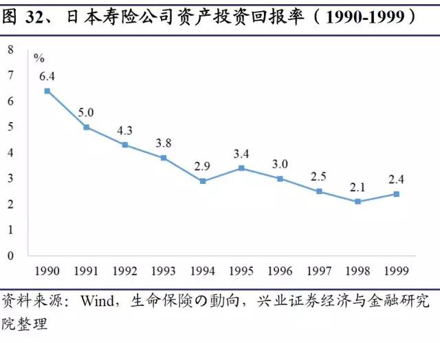 泡沫經(jīng)濟時代,日本壽險公司為了搶占市場份額,增加保費收入,銷售了大量高預定利率、儲蓄性強的養(yǎng)老保險和個人年金。隨著經(jīng)濟泡沫的破滅,自1991年起,日本便不斷下調(diào)基準利率,壽險公司的預定利率也從1990年的6%以上,逐漸下調(diào)至1999年的2%。